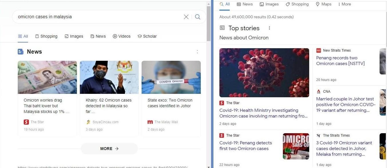 下图:时事搜索,即使不点击”新闻“,PS也会把搜寻词汇归纳在 “新闻”范畴内
