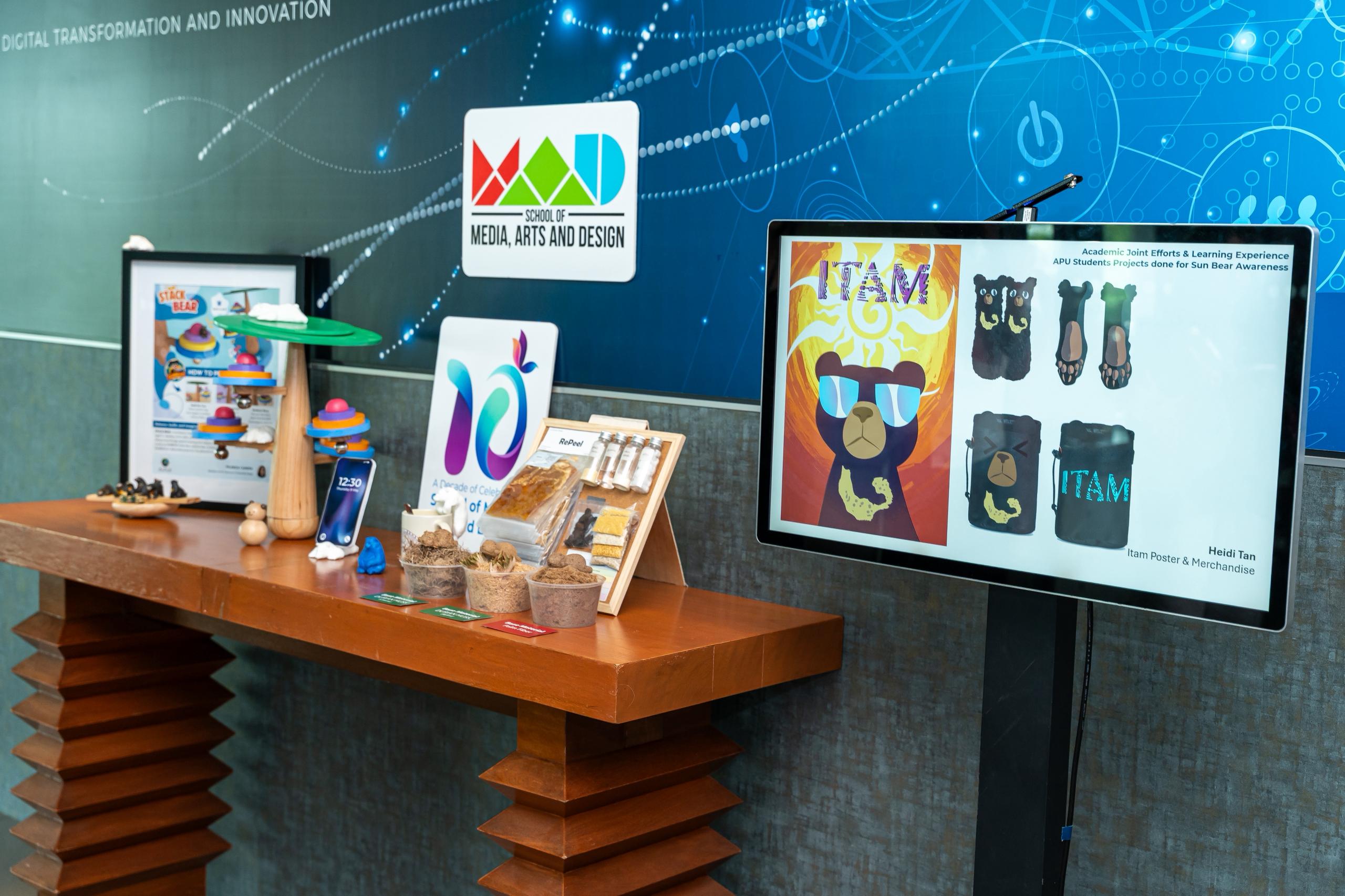 Working closely with Brainchild Pictures, students from APU’s School of Media, Arts and Design (SoMAD) contributed creative proposals, including graphic designs, motion graphics, VFX teaser ads, and awareness campaigns. They also explored sustainable 3D souvenirs and developed tourism-focused storybooks to raise awareness about sun bears.
