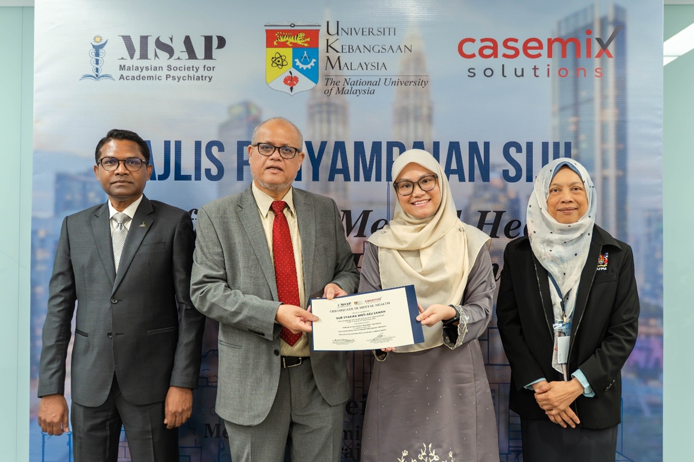 The certificate of completion, jointly awarded by the Society, Universiti Kebangsaan Malaysia and Casemix Solutions was the first such certification to scale up mental health service in Primary Care in Malaysia.