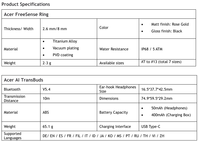 The Acer AI TransBuds are lightweight and compact earbuds designed to simplify multilingual communication. By connecting to a smartphone or tablet via a plug-in receiver, the device activates real-time, two-way voice translation powered by AI-based speech recognition and semantic analysis.