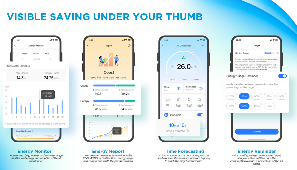 Midea’s integrated Energy Management System empowers users to take control of their consumption. With real-time power monitoring, monthly electricity reports, and predictive alerts when nearing preset usage thresholds, users can track and optimize cooling usage via the Midea app. This turns the air conditioner into a true AI-powered energy manager—not just a cooling device.