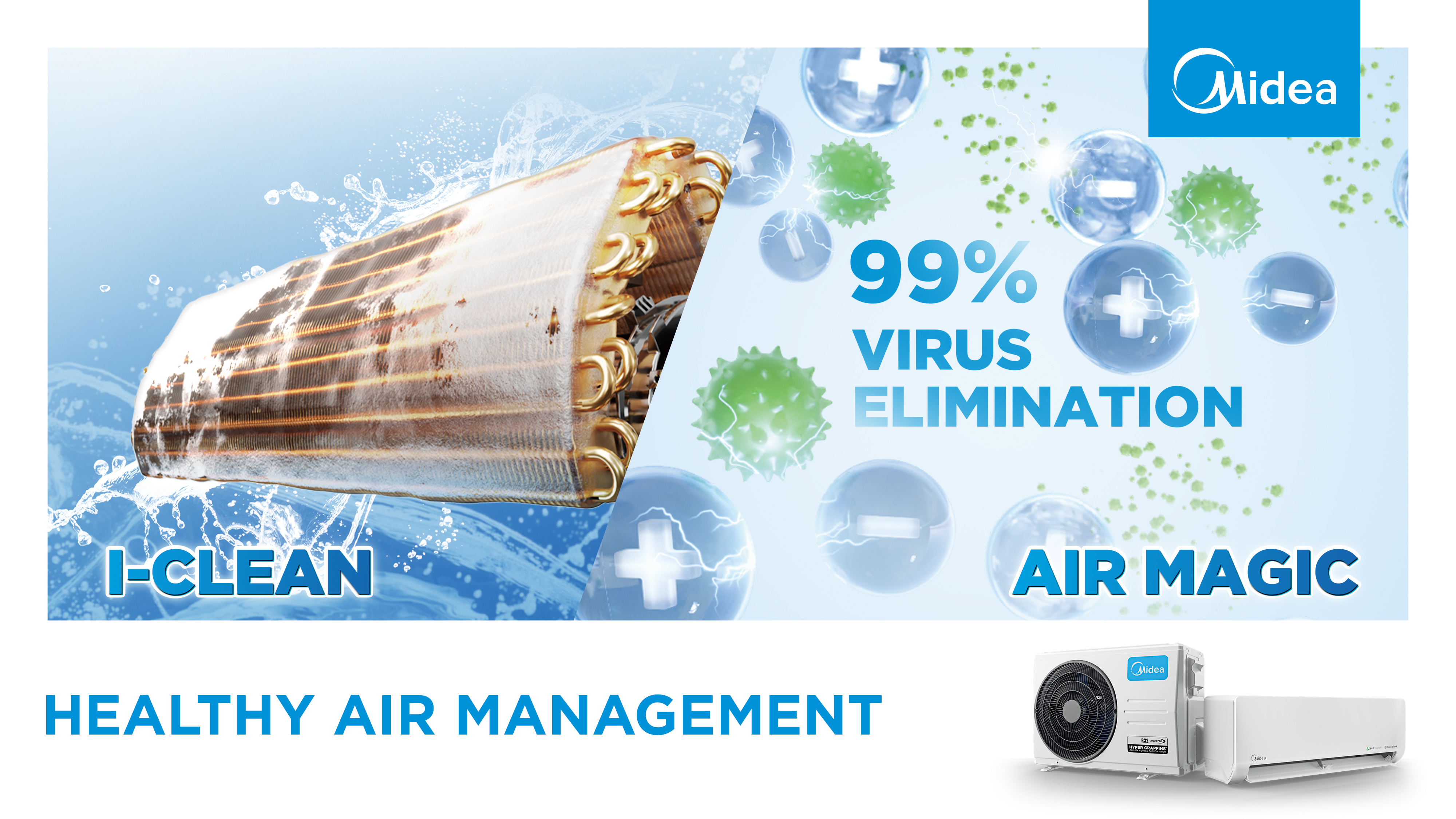 Midea’s new series includes Air Magic Technology, releasing millions of positive and negative ions to neutralize 99.97% of airborne bacteria and viruses*. Combined with i-Clean self-cleaning technology, these features ensure long-term health benefits with low energy use, lowering costs and maintenance.