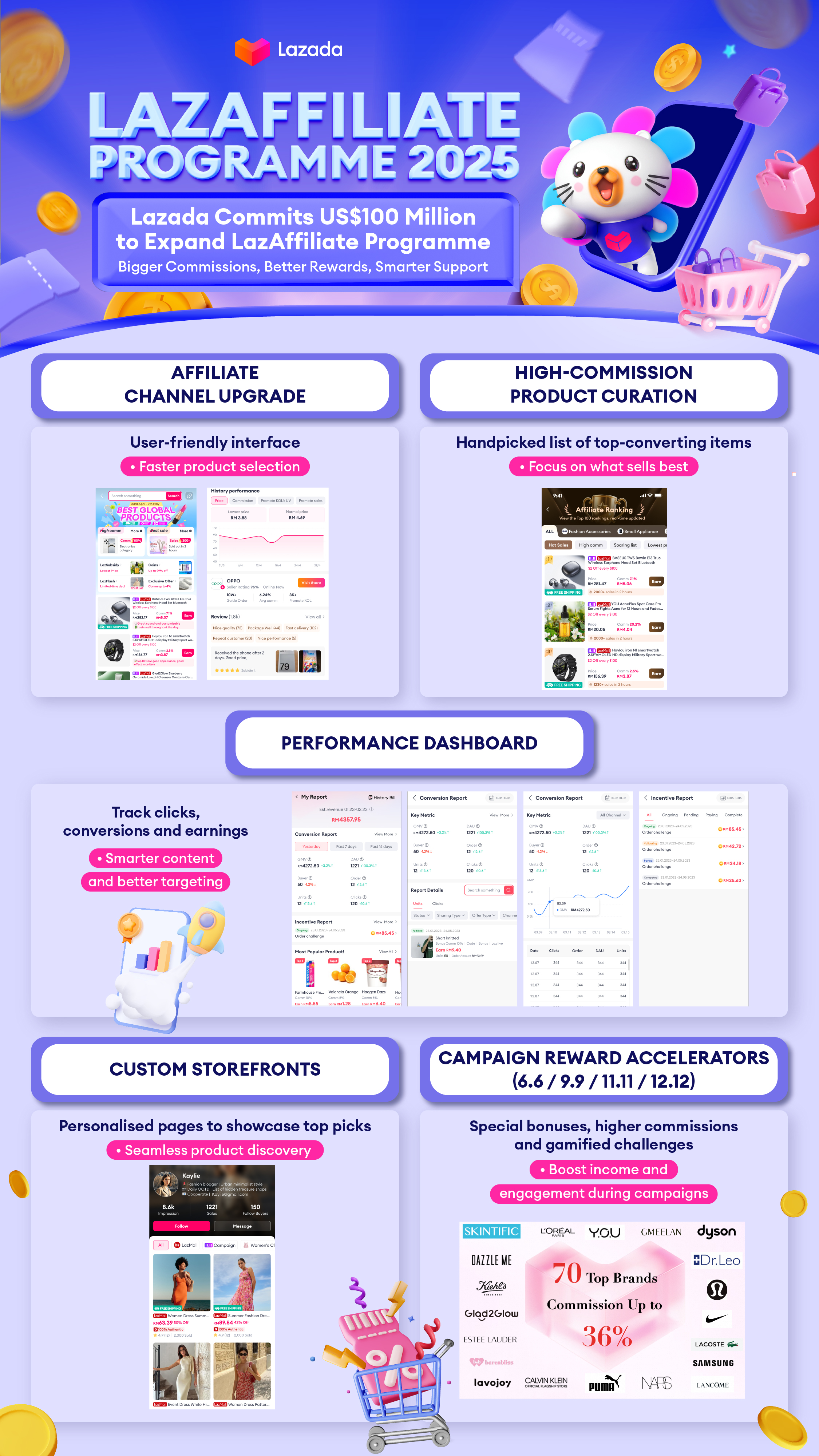 LazAffiliate is Lazada’s flagship affiliate programme that connects a growing network of creators—ranging from influencers and content creators to passionate everyday shoppers—with brands and sellers. By driving traffic and conversions through personalised recommendations, affiliates earn commissions for every successful sale with no cap. The LazAffiliate Programme offers a no-barrier entry into creator commerce, with no minimum following required — just share, recommend, and earn.
