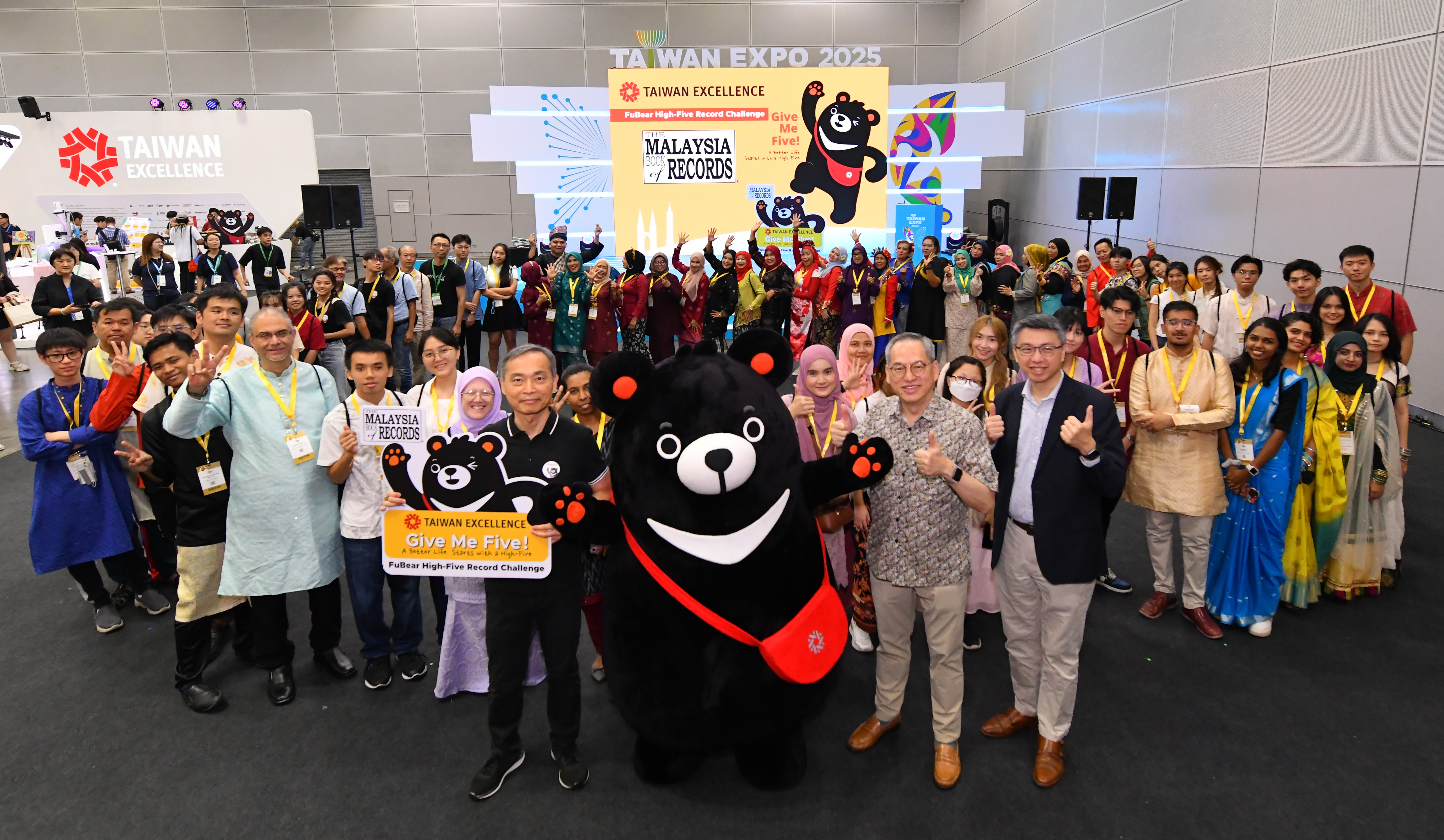 Taiwan Excellence mascot, FuBear, has managed to set an amazing record at Taiwan Expo 2025 in Malaysia by completing 186 high-fives with 70 participants in one minute. The feat has earned it a spot in the Malaysian Book of Records under the title Most High-Fives in One Minute By A Costume Mascot.