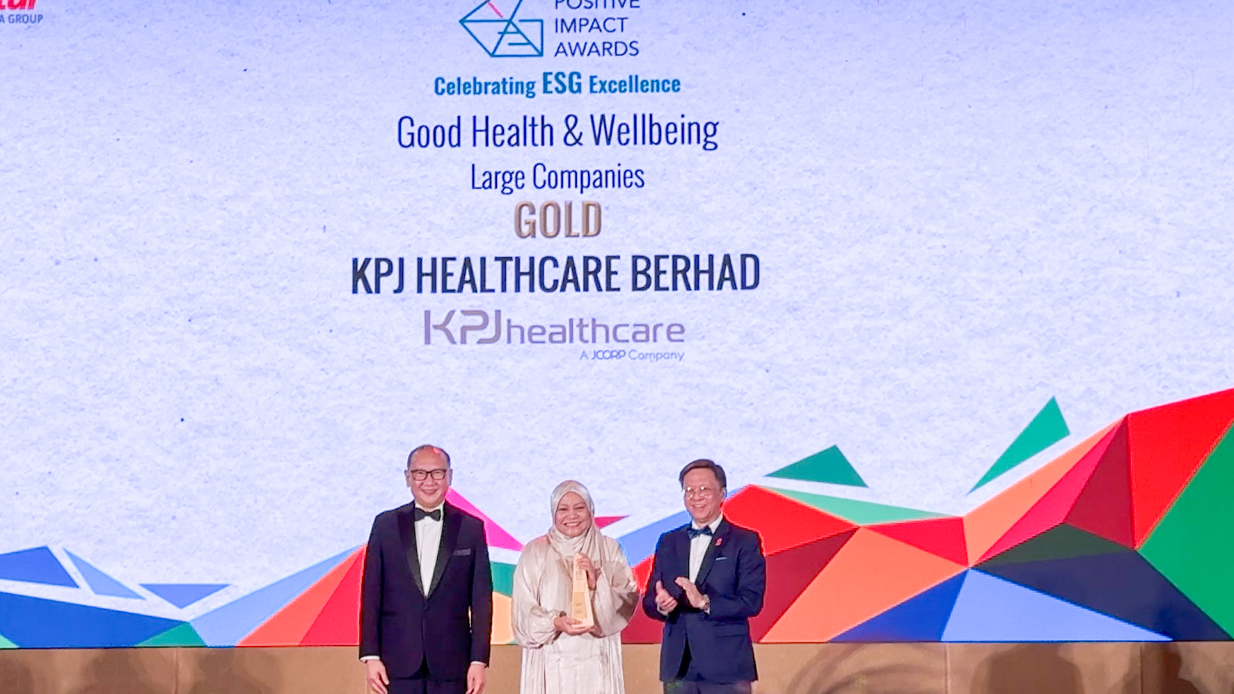 KPJ Healthcare Berhad (“KPJ Healthcare” atau “Kumpulan”) mengukuhkan kedudukannya sebagai penyedia penjagaan kesihatan swasta terbesar menerusi empat anugerah di ESG Positive Impact Awards 2024, anjuran Star Media Group. Anugerah tersebut mengiktiraf syarikat-syarikat di Malaysia yang telah menerap amalan Alam Sekitar, Sosial dan Tadbir Urus (“ESG”) dalam operasi perniagaan mereka.