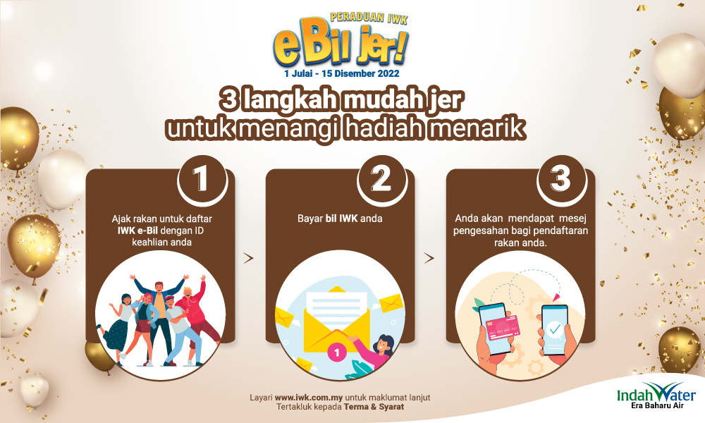 Menyertai peraduan IWK e-Bil Jer! mudah aje – hanya tiga langkah: