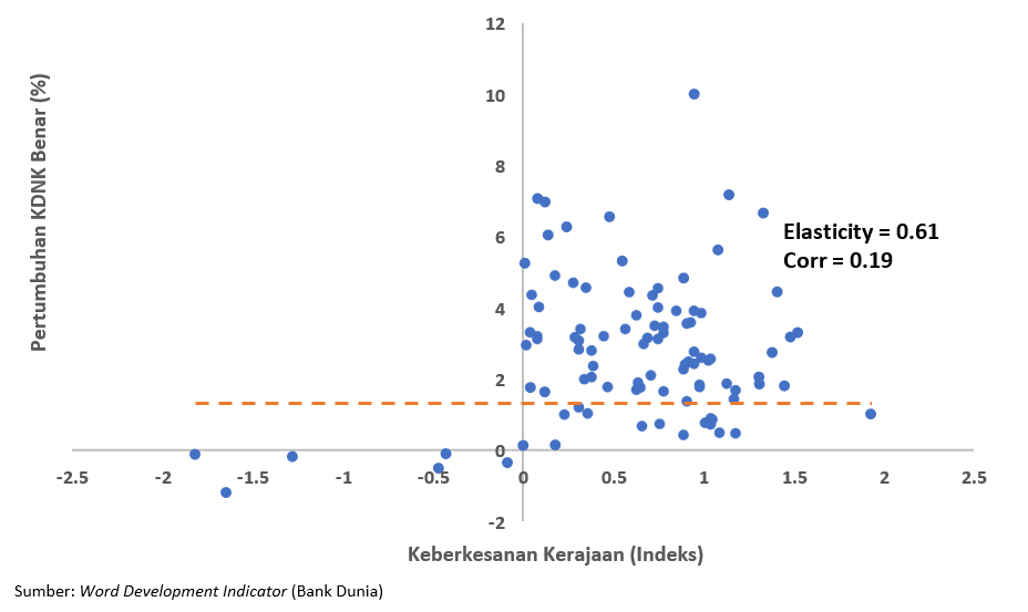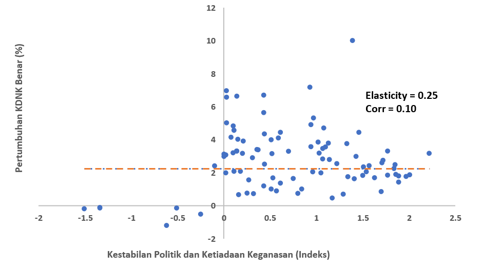 大马社会当然已经了解到,如果人民想要享受舒适的生活和更好的生活水平,比如至少达到疫情大流行之前的生活水平,政治稳定是非常重要的。 研究显示,政治稳定除了可以带来更高的经济增长,政府也可以更有效性地执行相关发展政策,改善人民生活素质。图表 1 和图表 2 清楚地告诉我们,只要政治稳定形势每增加 1%,预计经济增长可以增加 0.25%;而每当政府的效率提高1%,预计国家经济增长将增加0.61%。