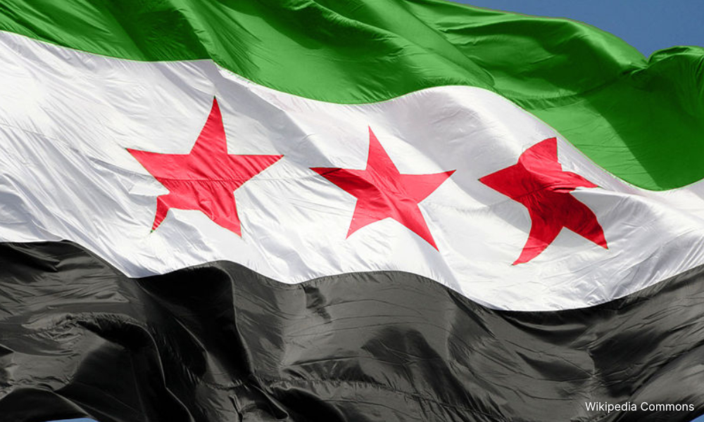 Di Syria, perkara berbeza berlaku. Di sana kebangkitan Arab Spring gagal menumbangkan Bashar Assad. Tetapi para peserta demonstrasi menggunakan bendera berlainan iaitu jalur hijau, putih dan hitam dengan tiga bintang di tengah. Ia merupakan bendera awal Republik Syria sebelum penubuhan UAR. Tiga bintang itu melambangkan tiga wilayah asal Syria iaiti Damsyek, Homs dan Aleppo.