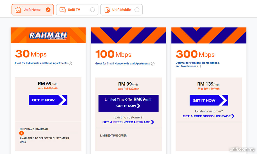 Tawaran 1Gbps dan 2Gbps syarikat kekal tidak berubah masing-masing pada RM289 sebulan dan RM319 sebulan.