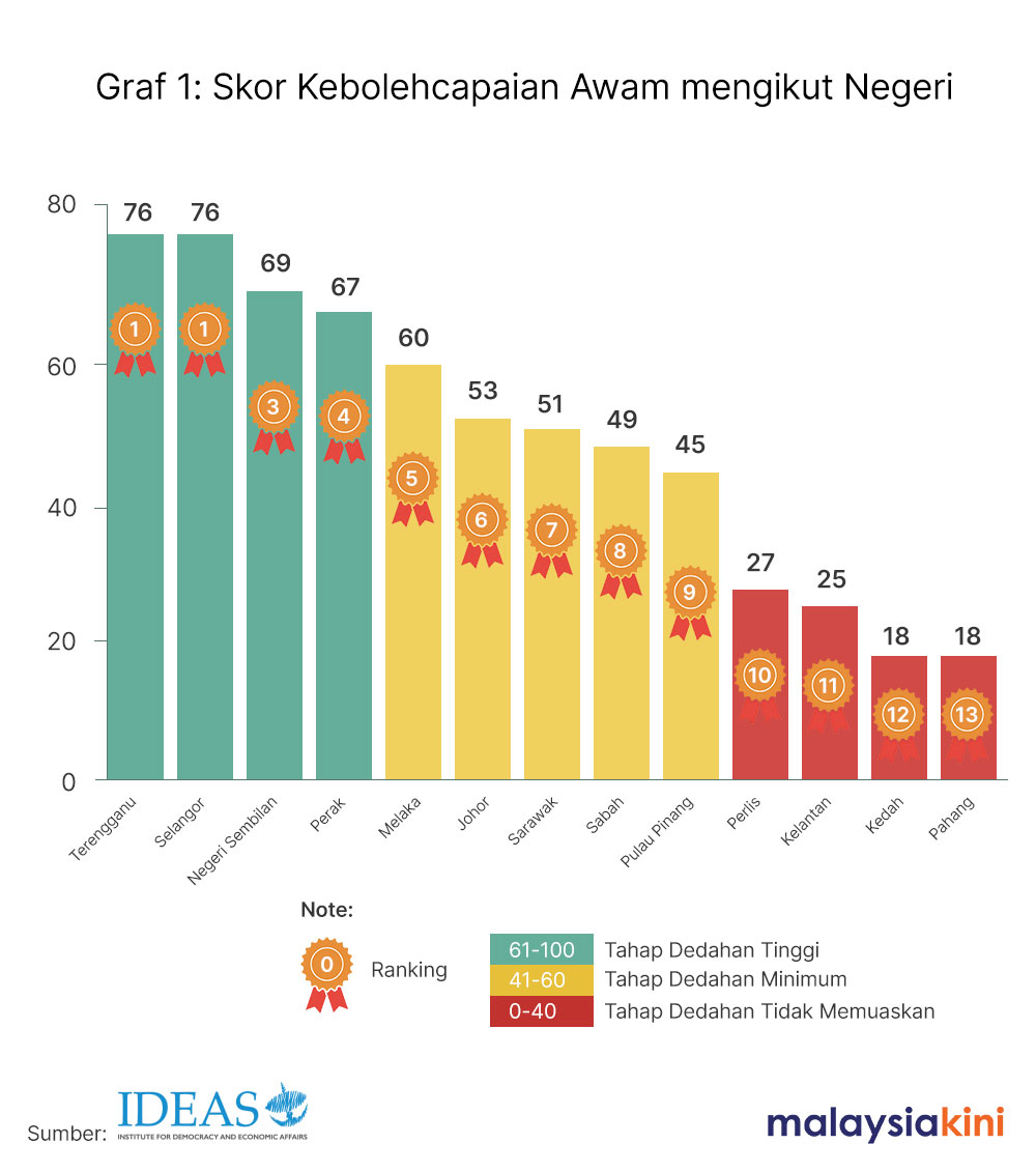 Menurut Skor Ketersediaan Awam MyOBI, selain Terengganu dan Selangor di tempat pertama, Negeri Sembilan dan Perak di tempat ke-3 dan ke-4 juga mendapat markah yang cukup untuk memenuhi piawaian untuk ketersediaan dokumen belanjawan utama.