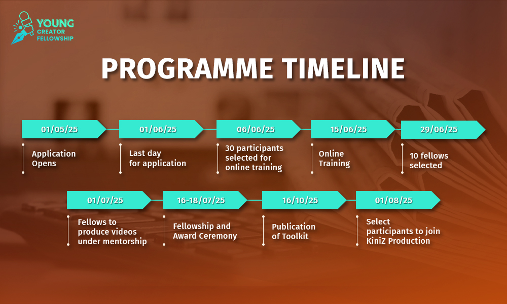 10位表现最优秀的参与者将入选为“新锐创作者”学员,于7月1日至15日接受一对一导师辅导,期间需完成一则以社会公共议题为核心的3分钟影片,并可赢取总值1万7000令吉的奖品。