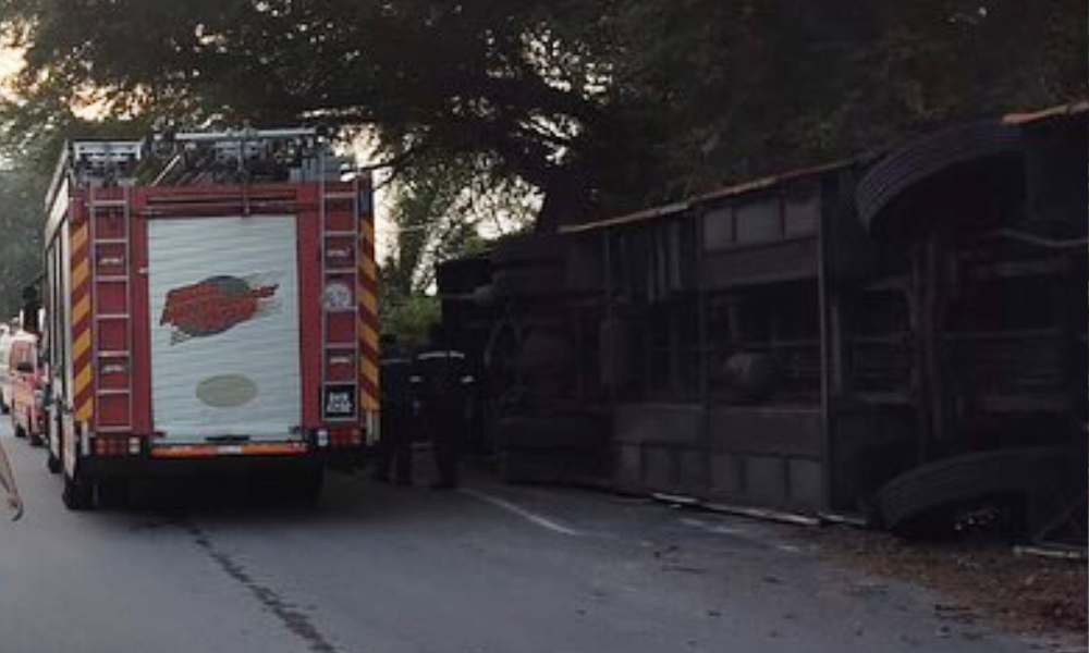 Seramai 33 pekerja warga asing cedera selepas bas kilang yang dinaiki mereka terbabas dan terbalik dalam kemalangan di Jalan P/6, Seksyen 13, Bandar Baru Bangi, pagi tadi.