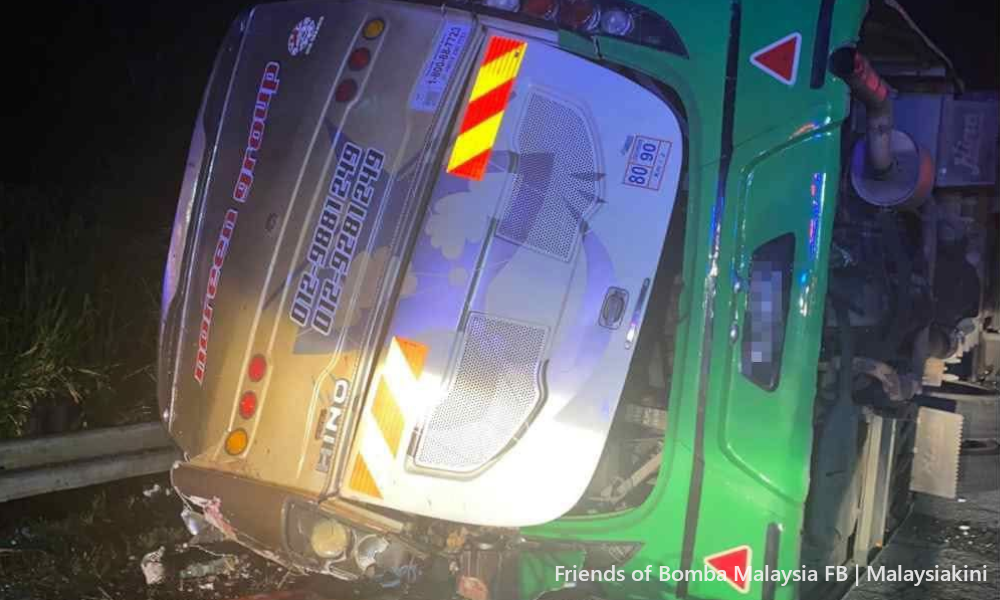 “Sampai di lokasi, didapati berlaku kemalangan jalan raya melibatkan sebuah bas terbalik dengan sebuah kenderaan pelbagai guna (MPV) jenis Alza,” menurut kenyataan itu.