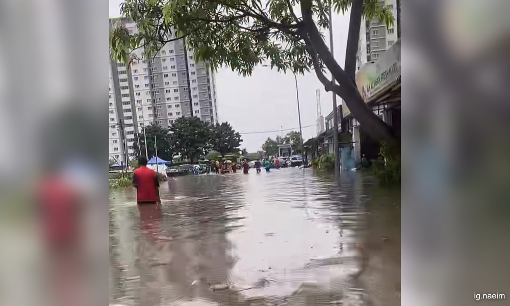 Satu siaran langsung di TikTok menunjukkan kawasan perumahan di Bukit Kemuning, Seksyen 32 Shah Alam, dilanda banjir sedalam paras lutut.