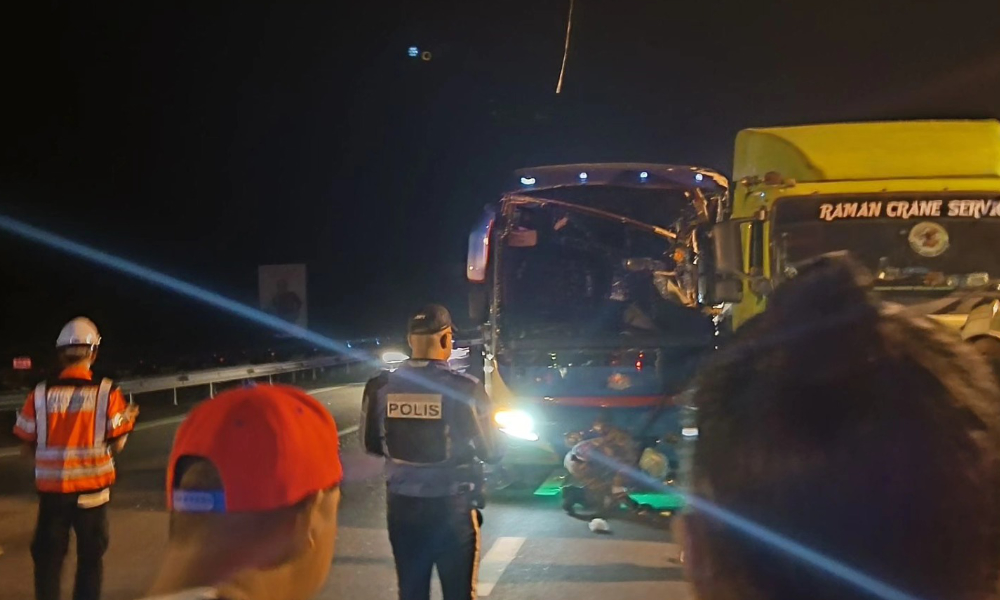 Dua lelaki maut manakala 16 lagi cedera dalam kemalangan melibatkan sebuah bas persiaran dan dua lori di Kilometer 80.7 Lebuh Raya Utara Selatan (Plus) arah Selatan, Ayer Hitam di Johor Bahru, tengah malam tadi.