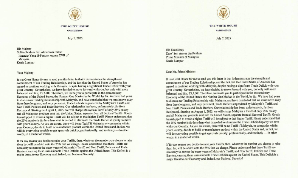 AS mengenakan tarif lebih tinggi sebanyak 25 peratus ke atas sebarang dan semua produk Malaysia yang dieksport ke negara itu, berkuat kuasa 1 Ogos tahun ini, berasingan daripada semua tarif sektor.