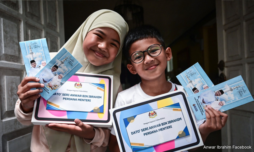 Keikhlasan dua beradik menghadiahkan duit raya kepada Perdana Menteri Datuk Seri Anwar Ibrahim semalam telah menyentuh hati pemimpin negara itu yang membalasnya dengan pemberian sama.